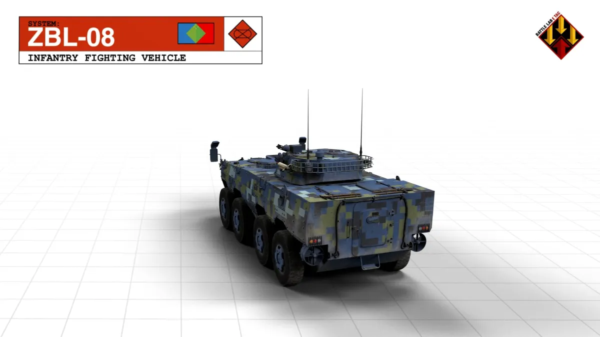 Breadcrumb Home Equipment ZBL-08 IFV ZBL-08 Main Weapon 30mm Autocannon ATGM Weapon 2x HJ-73C Red Arrow Max Range 5,000m (30mm), 3,000 (ATGM) Crew 2 Passengers 7/10