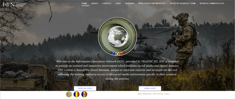 ION is a platform that bolsters both individual and group training in Information Operations. ION presents interconnected materials tailored to specific exercise contexts, with the capability to update instantaneously. This real-time modification is governed by the exercise's supervising team. ION boasts around 275 distinctive sites, which, include,